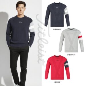 타이틀리스트 남성 배색 슬리브 방풍 라운드 니트(3color)