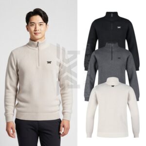 PXG 남성 자수로고 융기모 니트 반집업(3color)
