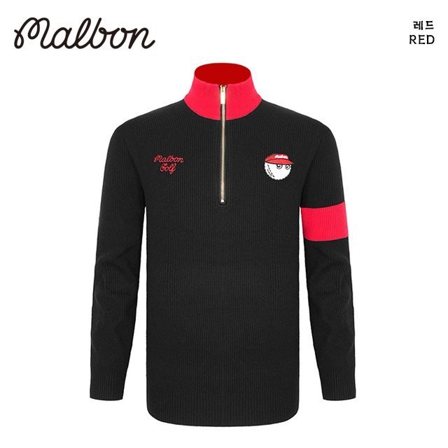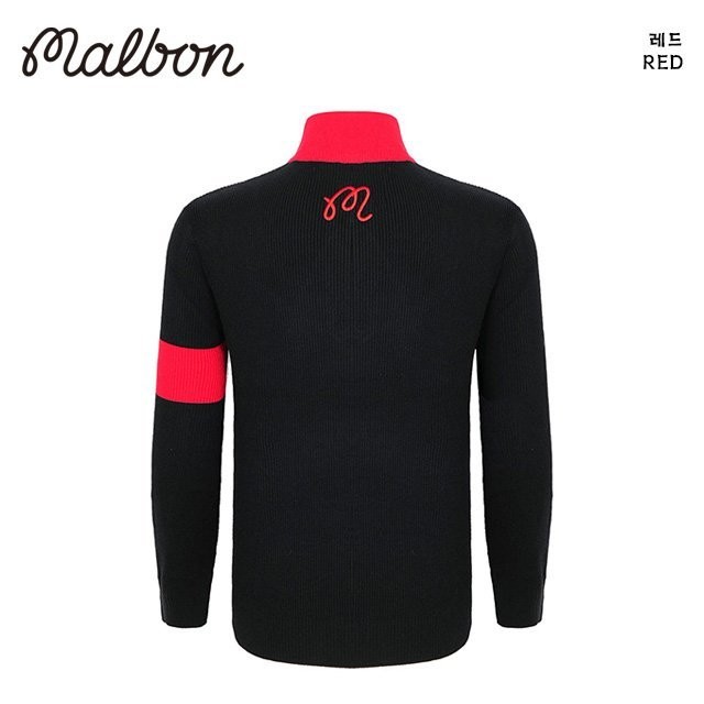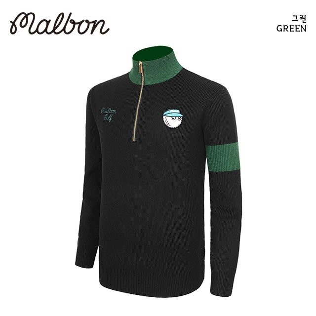 말본 남성 버킷 자수로고 니트 반집업(2color)