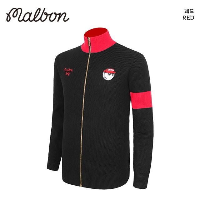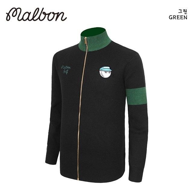 말본 남성 버킷 자수로고 니트 풀집업(2color)