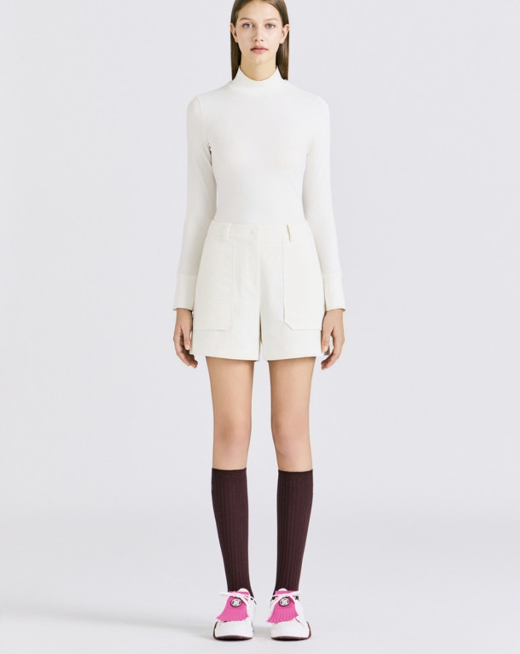 – 소매 니트 배색이 레이어드 착장 시 디자인 포인트가 될 뿐만 아니라,높은 단품성으로 완성 가능한 스타일