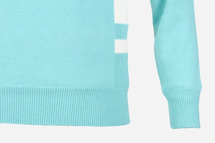 배색 슬리브 방풍 카라 니트