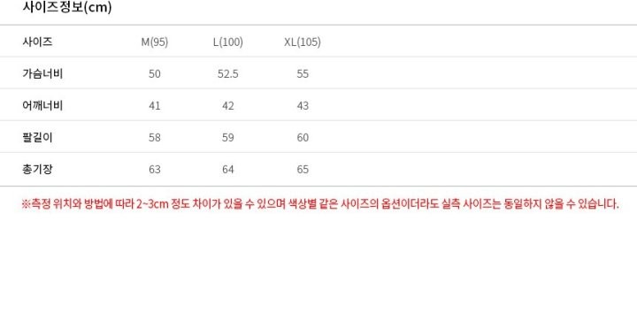 사이즈 – M(95) | L(100) | XL(105)
