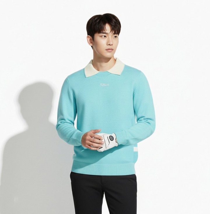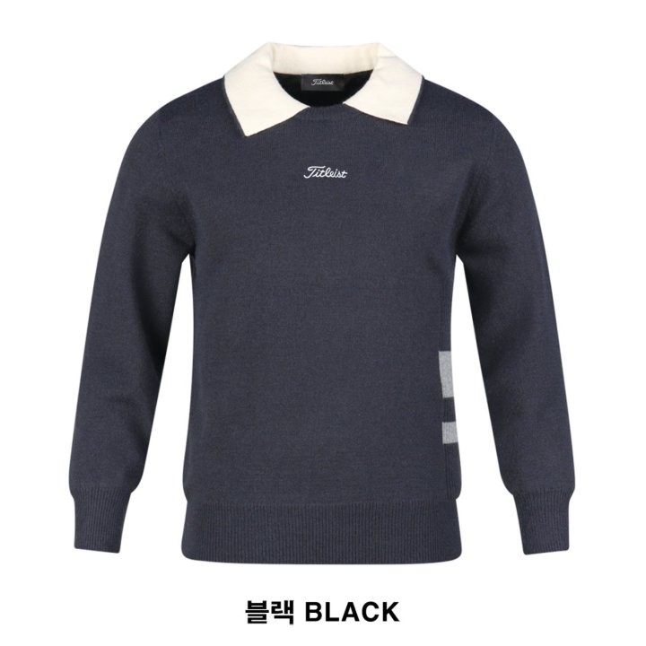 타이틀리스트 남성 배색 슬리브 방풍 카라 니트(3color)